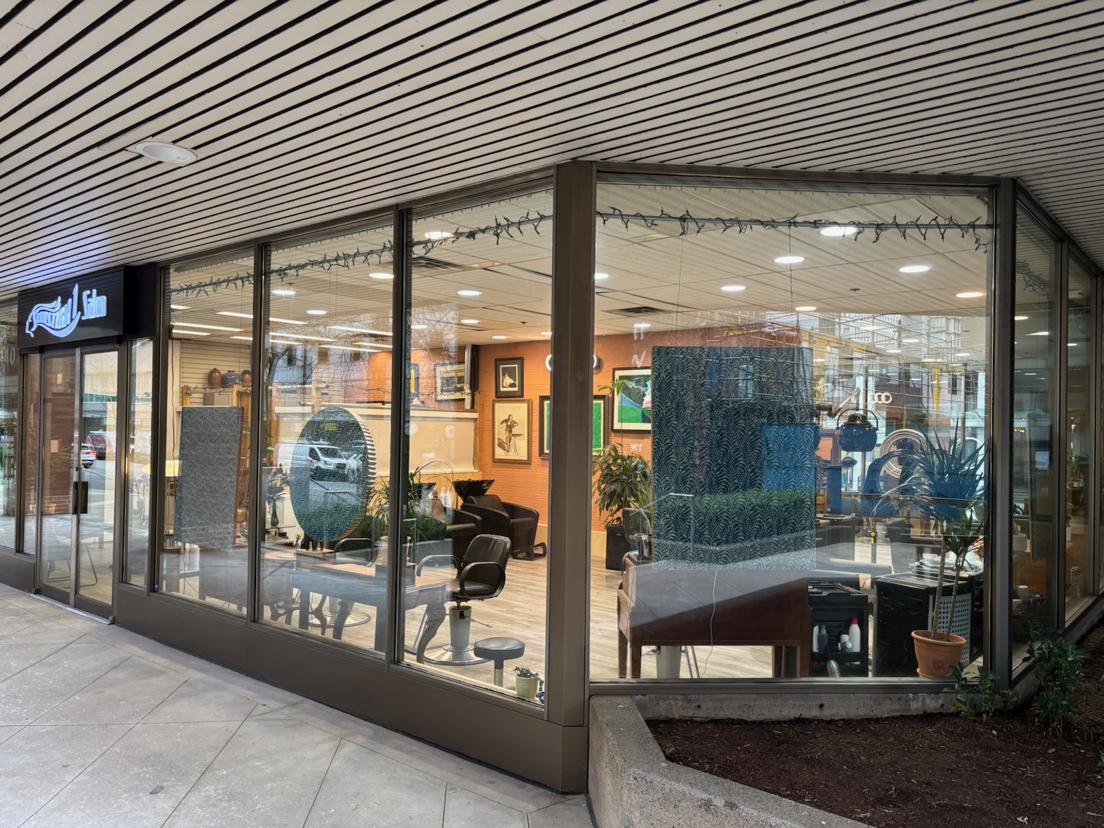 Firstly, you come into an atmosphere of glass windows that surround the salon and seem to reach the sky, and an abundance of tropical plants.